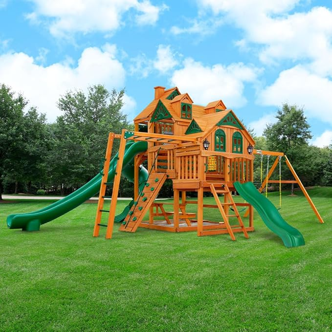 The Gorilla Playsets Empire Extreme Swing Set is built for families who want to create a full-scale adventure park at home. Designed for maximum activity and multi-child play, this expansive wooden playset combines climbing, sliding, swinging, and imaginative features into one impressive structure.
